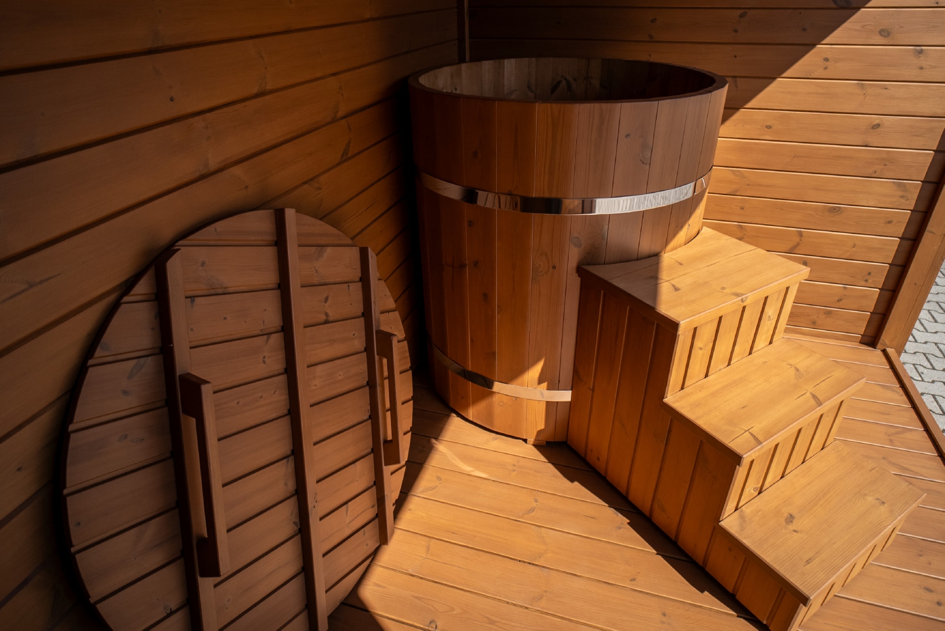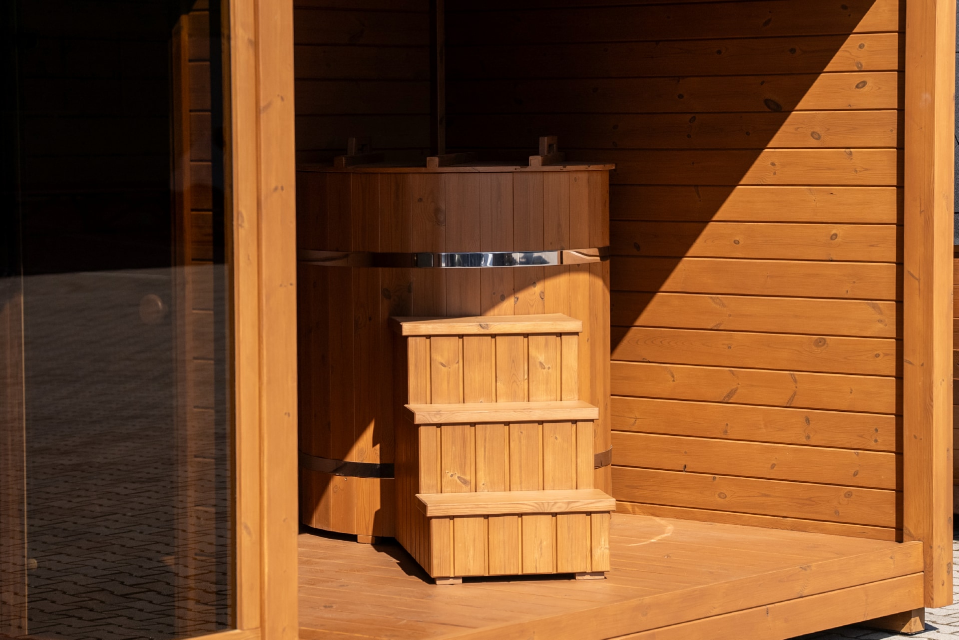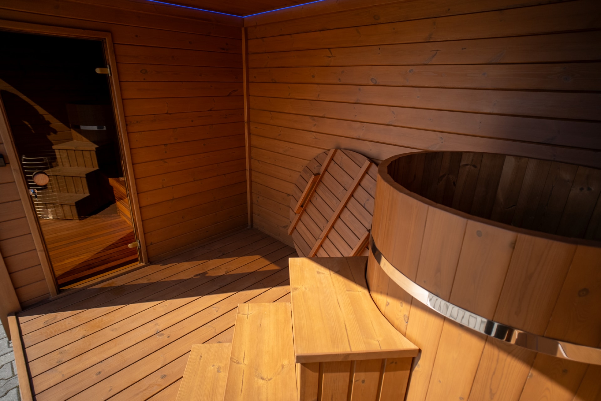 Thermowood sauna with shower and Jacuzzi