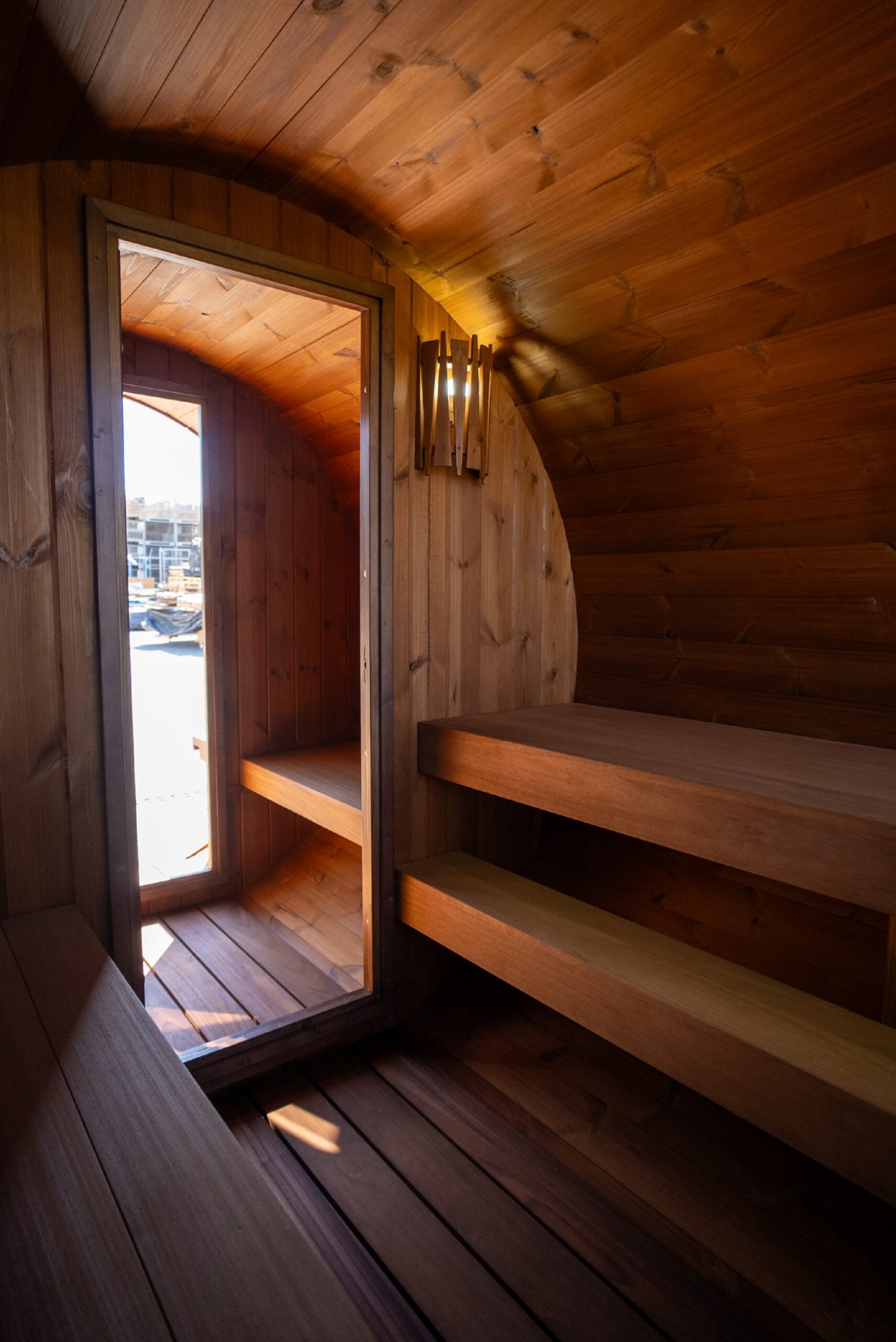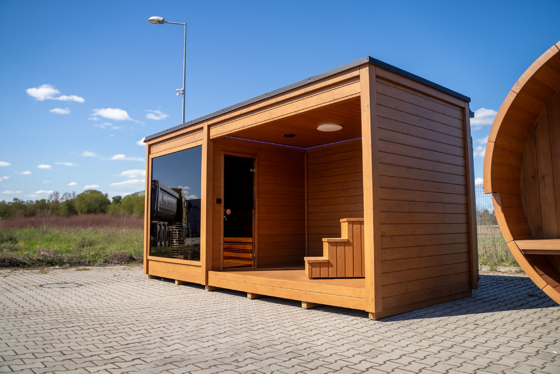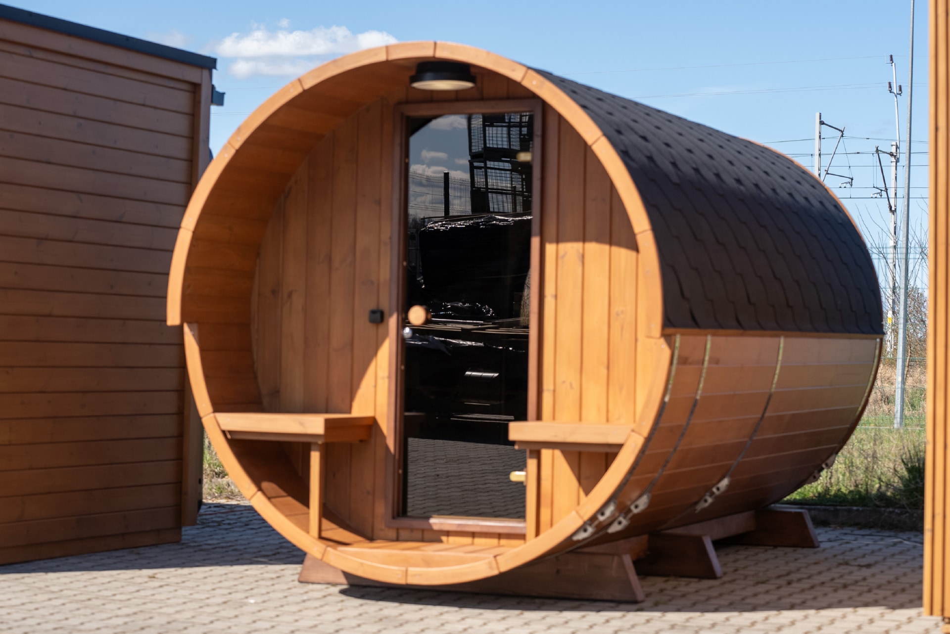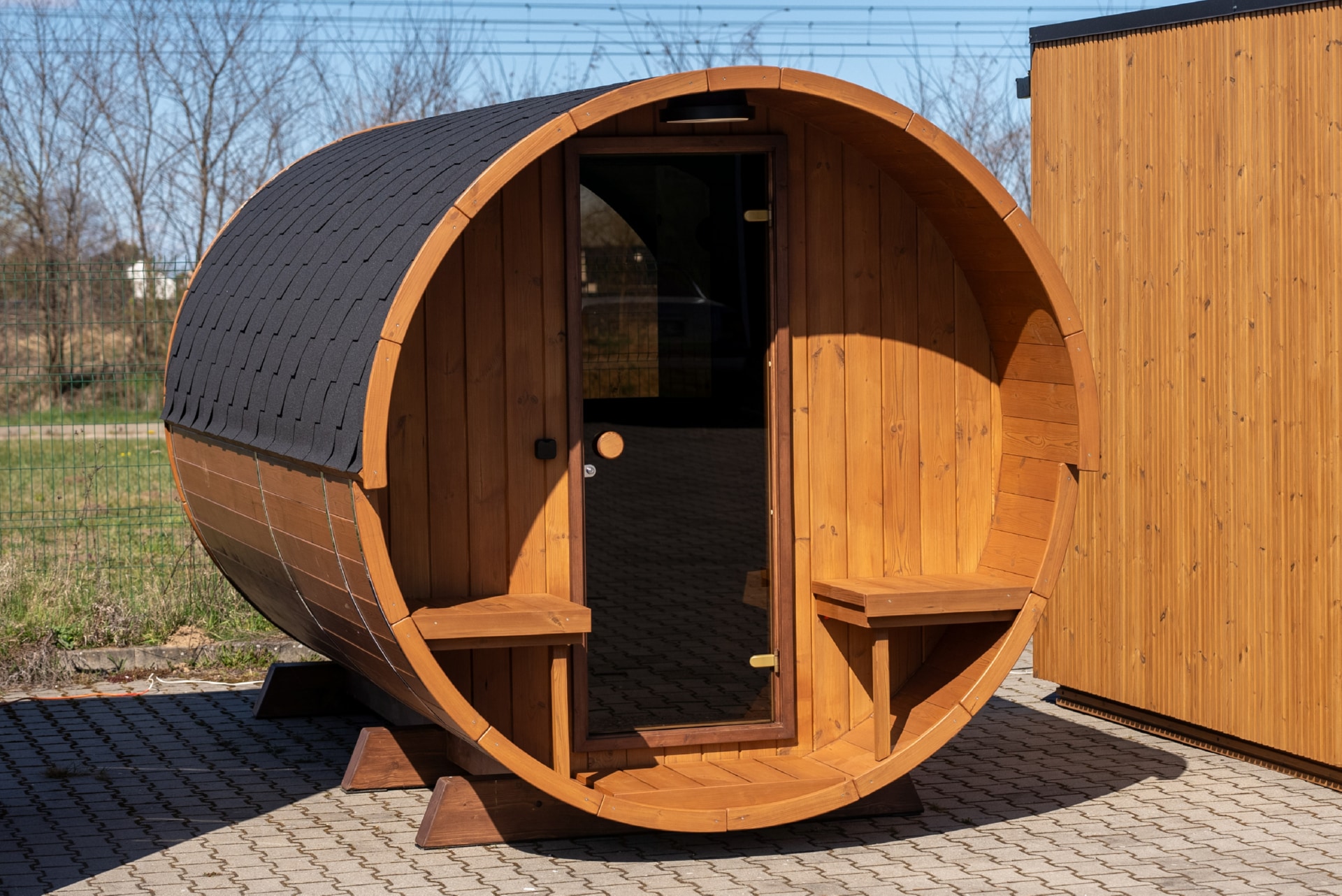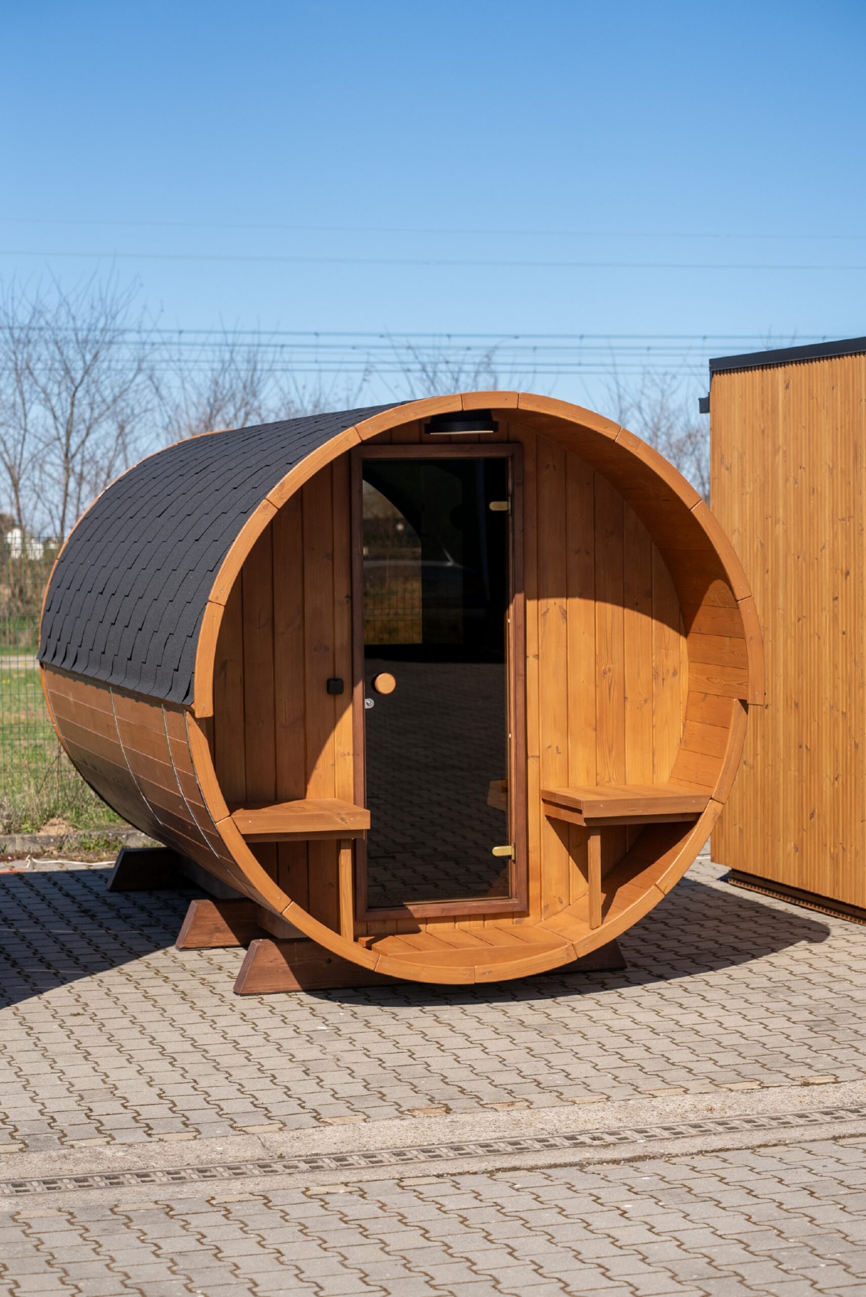 Terrace barrel saunas