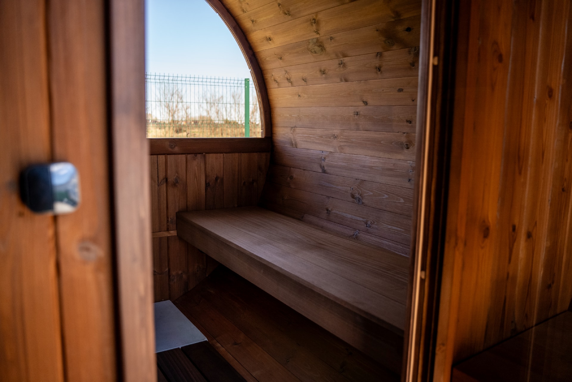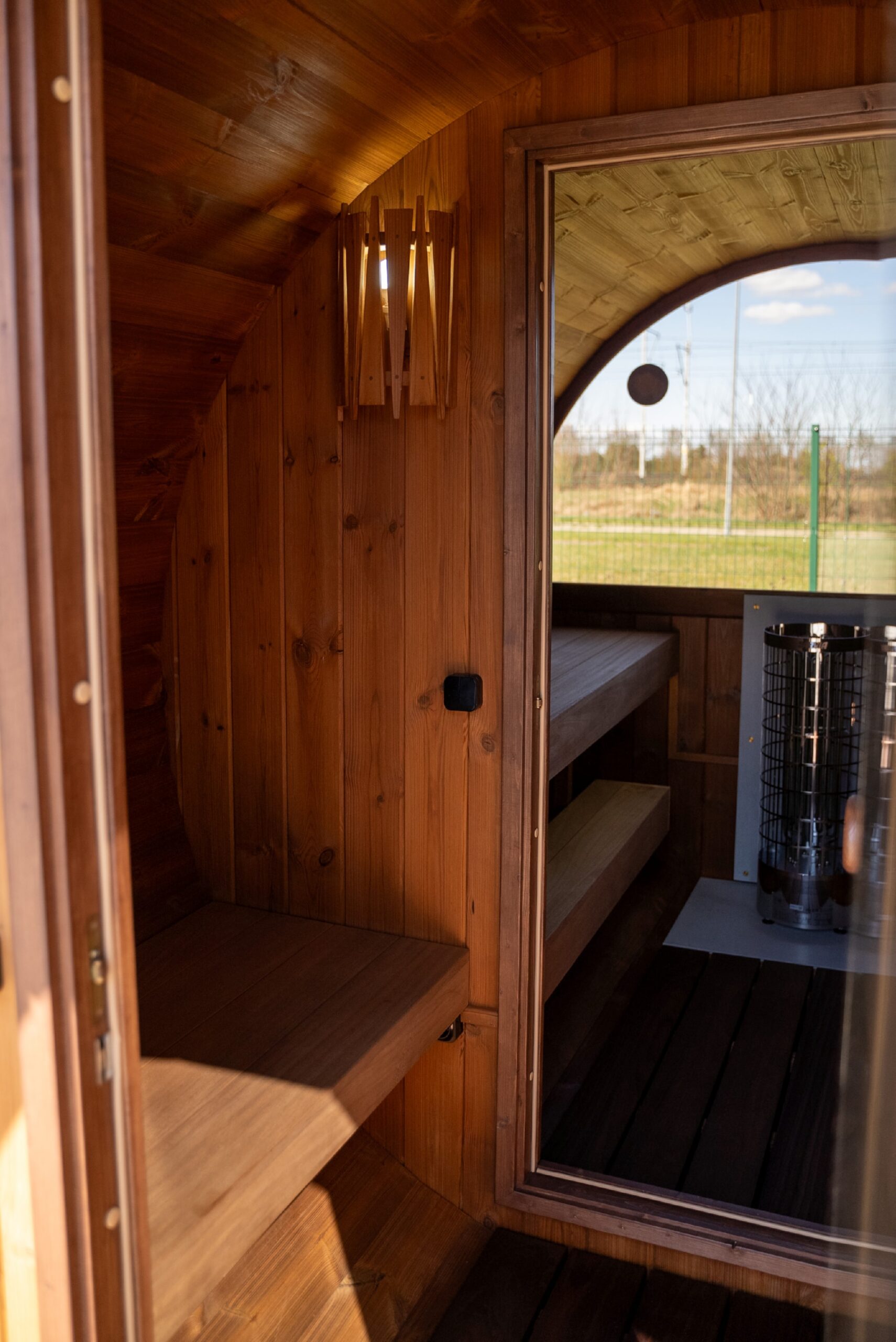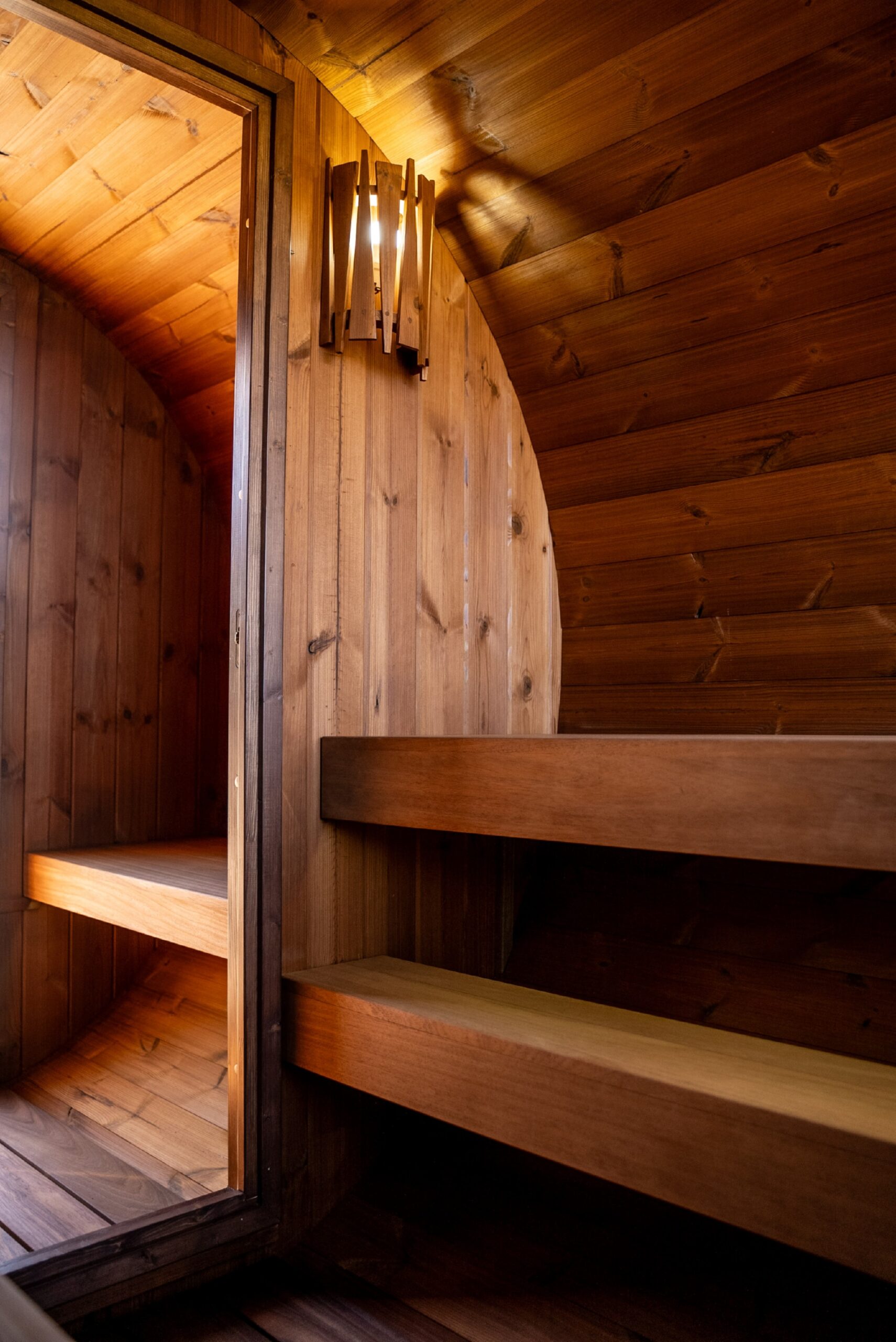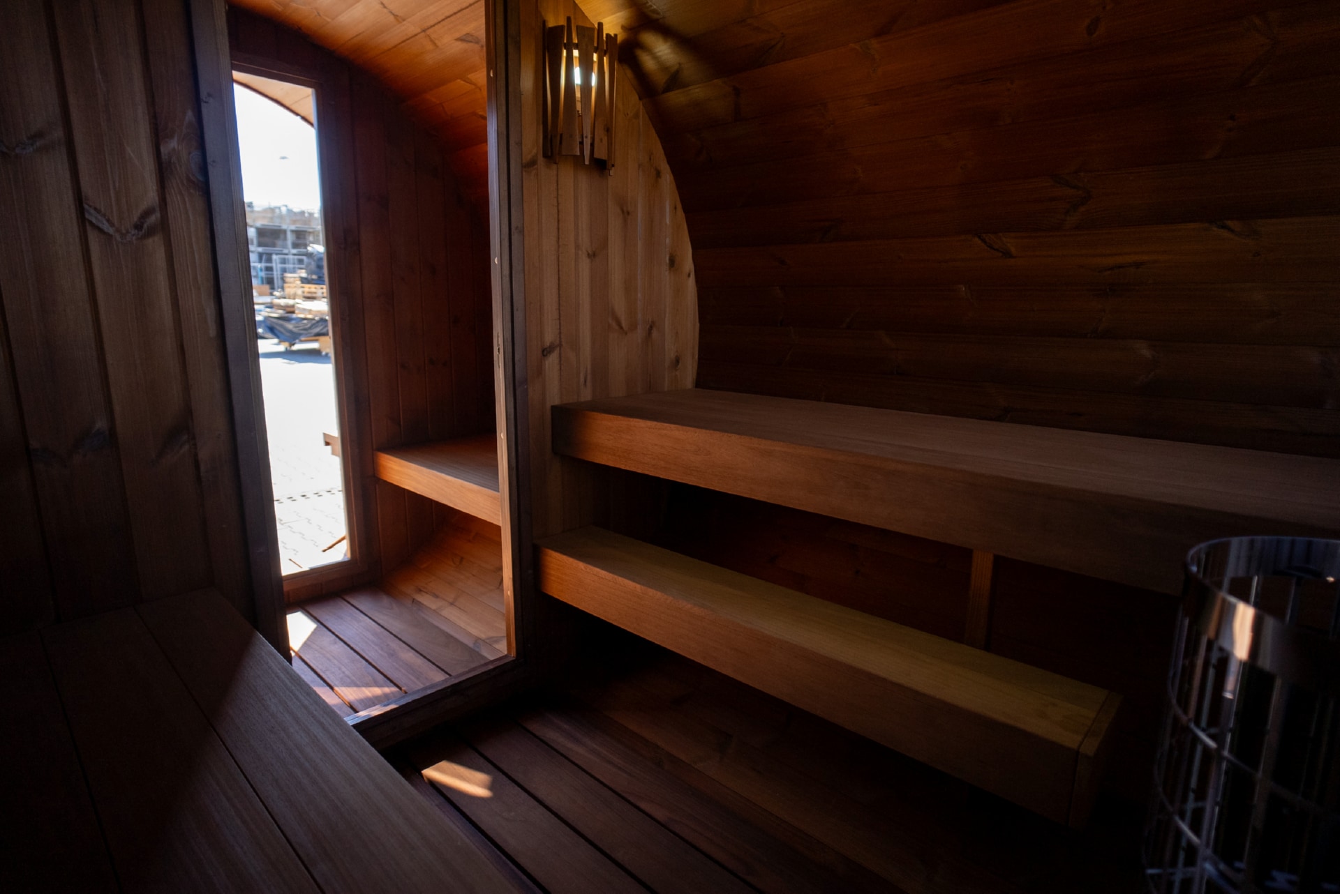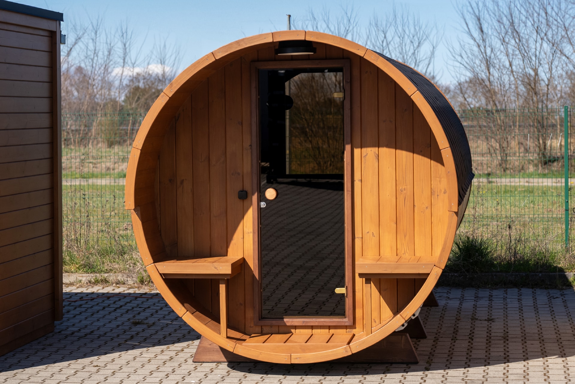 Terrace barrel saunas